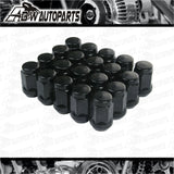 Set of 20 black wheel nuts designed for vehicles requiring a 12x1.5 thread size, suitable for various Holden Commodore VL, VN, VR, VS, VT, VX, VY and VZ applications where this specification is used.