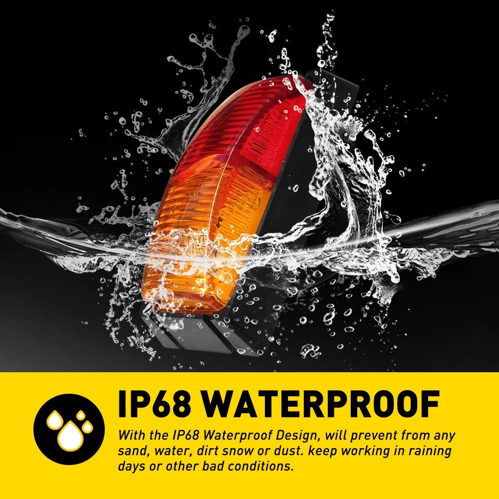 (NOTES: The packaging sizes may be slightly off due to manual measurement, different measurement methods and tools.) Features: *High Brightness High-brightness light outputs for improving your driving safety. *Waterproof The waterproof design supports the light work even under extreme conditions, especially on rainy or foggy days (IP68). *Excellent Design ABS Housing and PC Lens with good sealing, high thermal conductivity, and a nice appearance. *Easy Installation Direct installation is fast and convenient, durable and practical. *Lower Consumption Energy-saving with lower consumption. Suitable for all Cars, SUVs, vans, lorries, RVs, buses, boats, trailers Clearance and trucks with DC 12V / 24V. It can be used as side marker lights, rear lights, indicator lights, rear tail lights, license lights, Parking lights, etc. Packaging Include: Side Lights *4 Screw Kit*1