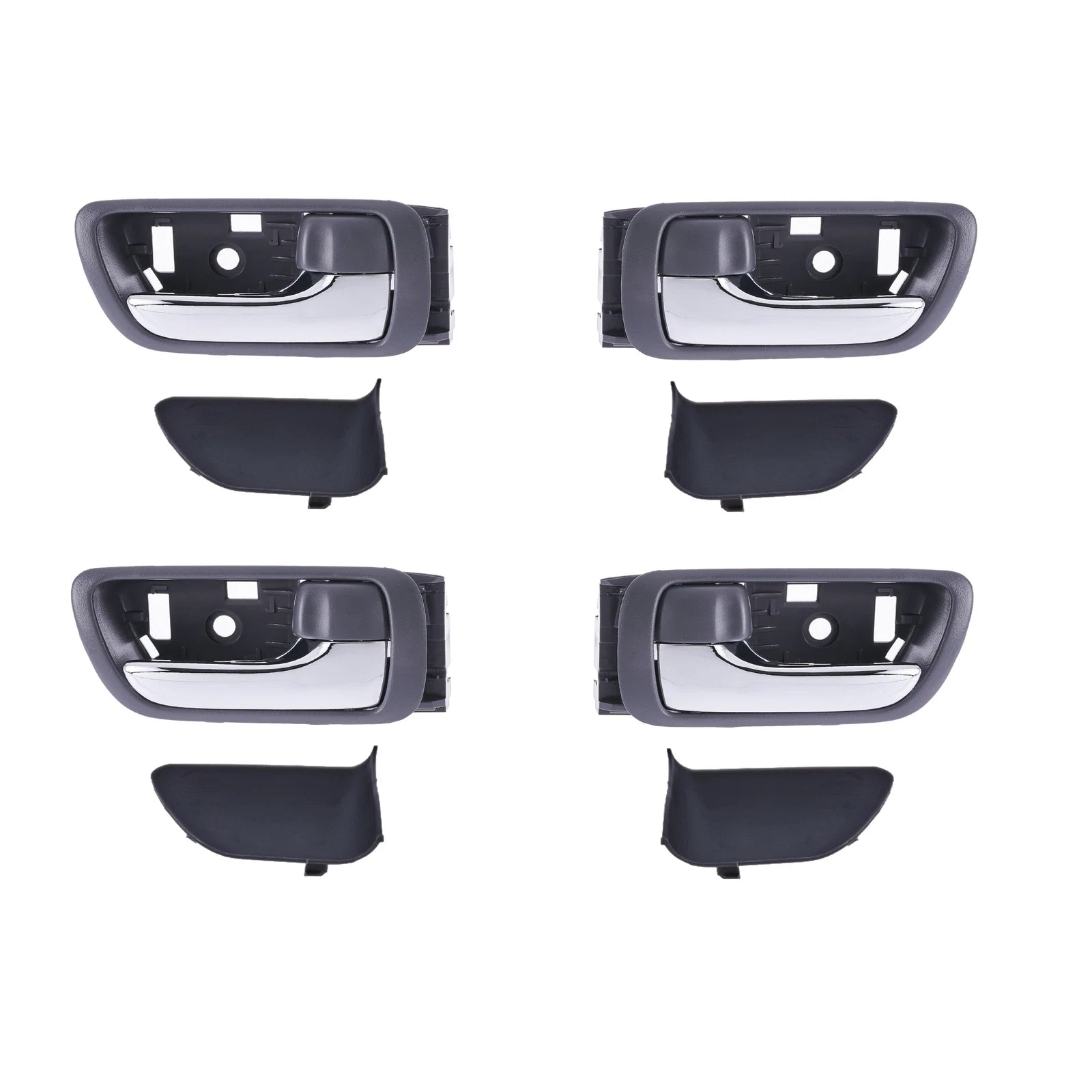 Product DescriptionProduct : Inner Door HandlesLocation : Front/Rear Left (Passenger Side) Front/Rear Right (Driver Side)Colour : Chrome Lever Grey HousingMaterial : Plastic, MetalPart Specs : High Quality AftermarketCondition : Brand NewQty per pack: 4 piecesFitmentMake : ToyotaModel : CamrySeries : ACV36Year : Sep 2002 - Aug 2006note for window regulator motor with anti-pinch function