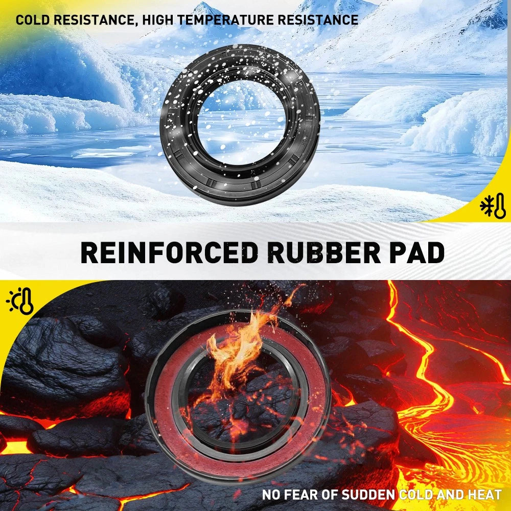 - Leak prevention: Seals the drive shaft connection tightly to keep oil in and dirt, water, and debris out.