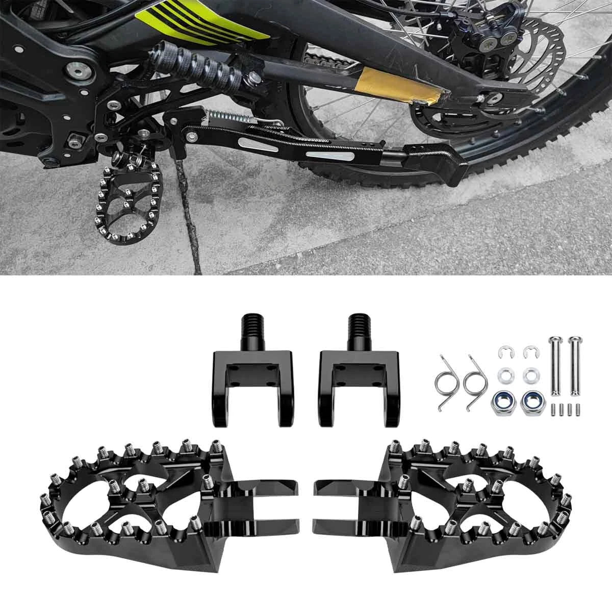powered by| --Oversized Footpegs Designed Specifically For Sur-Ron With The Correct Size Mounting Hole And Mount Design Meaning A Perfect Fit For Sur | ron with no play or wear on your frame. |
