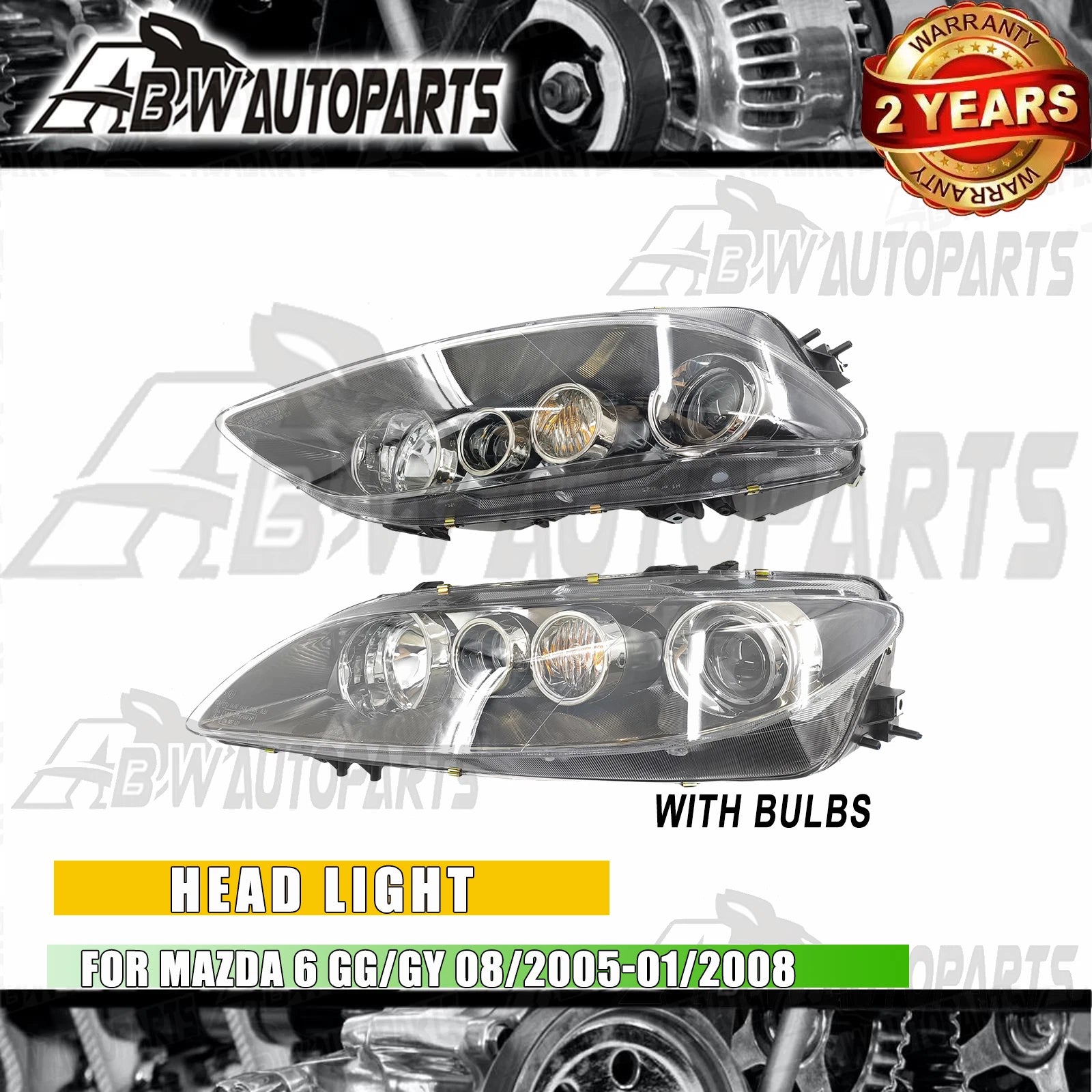 | Front Head Light LH+RH For Mazda 6 GG/GY Sedan 08/2005-01/2008 with Bulbs