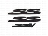 Matte black SS SSV badge set designed for Holden Commodore VE and VF models. This 3-piece kit provides an OEM-style appearance with a sleek, modern finish for rear and side placement.