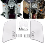 Fork Deflectors redirect wind around your legs and add protection to lower torso, making them great for long rides. They easily mount to the front forks of your motorcycle while still being unobtrusive, as not to take way from the look of your bike.