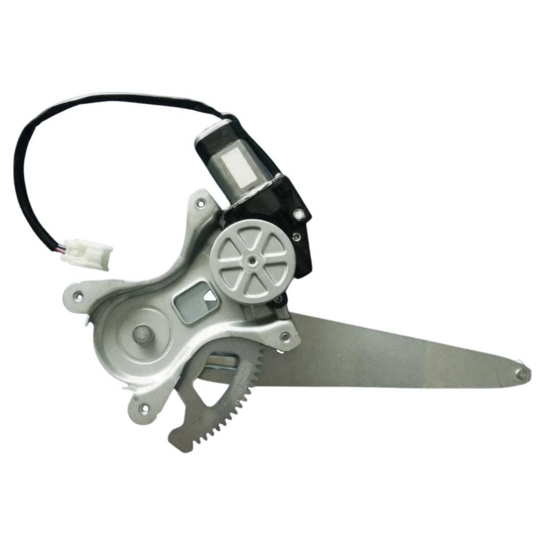 Rear left power window regulator with integrated motor, designed as a direct replacement for compatible Toyota Kluger MCU28R models from 2003 to 2007. Features a 2-pin motor connection for reliable and consistent power window operation.