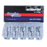 These SP Tools 1/4" Nitto style air hose barb fittings are designed for reliable connection of air hoses in workshop and compressor systems. Supplied as a box of 10 under part number PH20BX.