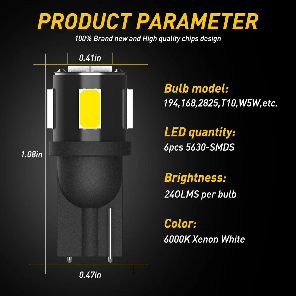 10X AUXITO CANBUS T10 LED Wedge Parker License Plate Light Globes W5W 194 168