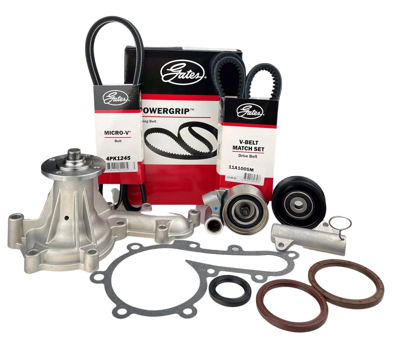 All our timing belt kits are warrantied for the full length of the original manufacturer's recommended timing belt service interval - conditions apply. All kits utilize a genuine Gates brand belt. All timing belt kits are assembled only using suppliers and componentry that has proven reliable over the 35 years we have been in business. If you are unsure of fitment for your particular make and model, please check with our customer service team before purchase.