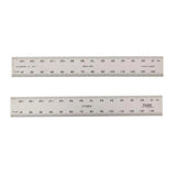 | Numerical Markings In Transverse Order (Lower Edge Counting Left To Right And Upper Edge Counting Right To Left) Graduations On Both Upper And Lower Edge Two Square Ends No Quiet Space - Complete Rule Is Graduated Manufactured From Stainless Steel Length | 150mm Width: 20mm Thickness: 1.0mm Graduation upper edge: 1mm Graduation lower edge: 0.5mm |